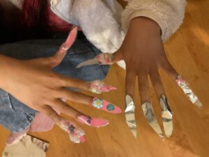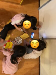 折り紙とハサミやテープを使って楽しそうに作っています🤩